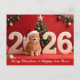 A Merry Christmas and a Happy New Year 2026 from our adorable ginger tabby cat. Personalized text.