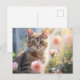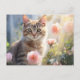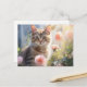 Tarjeta postal de gato con rosas en acuarela digital preciosa. Delicadas rosas rosadas claras para la función de verano en esta tarjeta postal floral bonita, la tarjeta ideal para aquellos nacidos en junio, ya que las rosas son su flor de nacimiento.