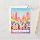 Una postal moderna y vibrante de estilo acuático para el mes del Orgullo (junio). La escena presenta un horizonte urbano abstracto pintado en gradientes de arcoiris, con fuertes pinceladas que se mezclan entre los edificios y el cielo. Un grupo diverso de personas marchan con banderas del orgullo - arco iris, trans, no binarias, asexuales - a lo largo de una amplia avenida. Los grifos y las gafas giran por el aire, y los audaces mensajes de arte callejero como "Be You" (Sé tú) y "Love Wins" (El amor gana) están sutilmente trabajados en el fondo. El texto dice: 'Mes del Orgullo 2025 - Celebrar con amor' en tipografía limpia, audaz, moderna sin pretensiones.