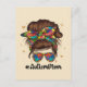 Esta postal muestra a una mujer con un moño desordenado con un color de conciencia sobre el autismo y la palabra "mamá autista". Es perfecto para las madres, una persona con autismo o familias de personas con autismo.