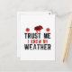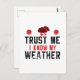 A los meteorólogos y a los meteorólogos les encantará el peculiar mensaje de este diseño meteorológico que aparece en el frente con un mensaje que dice "Confía en mí, conozco mi clima".