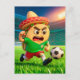 A lively taco character wearing a Mexican soccer jersey sprints across a bright stadium field with expressive determination. Crispy shell, lettuce, cheese, and tomato pieces add motion and personality. Clean vector‑like lines, soft 3D shading, and detailed grass create an energetic soccer atmosphere.