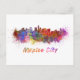 Mexico City skyline in watercolor splatters with clipping path