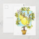 A colorful postcard featuring a lemon design inspired by Meyer lemons with a botanical style drawing in the middle, turquoise blue, and a stylized tree in the background illustrated with pencil and watercolor. Try this design on some of the other excellent products Zazzle offers!
