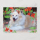 Esta postal muestra una de las fotografías de mi perro mezclador de Frontera blanco y dorado. Añadí un overlay de flores rojas acuarelas como borde. A cualquiera que ame a los perros le gustaría tener esta postal.