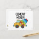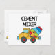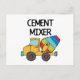 Mezclador de cemento colorido de azul, rojo, verde y amarillo y texto que dice "Mezclador de cemento" en camisetas, bibs, trajes de ropa, bolsas de tote, imanes y otros artículos que son geniales para los niños a los que les gustan los grandes vehículos de construcción.
