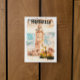 Postal de arte retro y retro con estilo, que muestra el paisaje y la impresionante arquitectura y monumentos como la mezquita koutoubia de Marrakech o Marrakech en Marruecos. Funciona como un recuerdo de viaje y también es una idea de regalo para memorizar sus vacaciones en el país del Magreb.