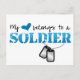 El diseño de temática militar incluye una serie de etiquetas de perro militares y dice "Mi corazón pertenece a un soldado" en letras angustiadas. Perfecto para esposas del ejército, novias, etc.