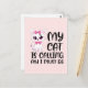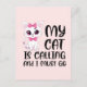 ¡Responde a la llamada del amor felino con esta postal de 'Mi gato llama y debo irme'! Con un elegante gato blanco adornado con una suave cinta rosada, esta encantadora obra de arte es perfecta para los amantes de los gatos que conocen el innegable tirón de sus queridos mascotas. Un regalo delicioso para los amantes de los gatos, este diseño añade un toque de sofisticación y humor a su día.