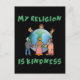 Gente dando la mano alrededor de la Tierra. Basado en la cita del Dalai Lama: "Mi religión es muy simple. Mi religión es la bondad".