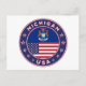 Insignia de Michigan con bandera de Michigan y bandera de los colores de Estados Unidos, forma redondeada. Emblema de Michigan. Sello de Michigan. Colección de Estados Unidos.