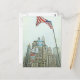 Una imagen de inspiración vintage de banderas que ondean sobre el puente de la avenida Michigan en el centro de Chicago.