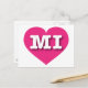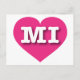 Esta postal tiene un vibrante corazón rosado caliente que contiene las letras negrita, blanca y alta del funda MI, la abreviatura oficial de Michigan, el estado de los Grandes Lagos. El reverso de la postal está en blanco, esperando el texto personalizado o los sentimientos manuscritos.