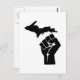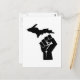 Mapa de Michigan con puño en lugar de migaja. Solidaridad por Michigan.