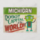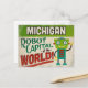 Una divertida postal de viajes de Michigan con un simpático robot con divertido texto de estilo retro que dice: "¡Michigan, capital robótica del mundo!"