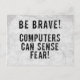 "¡Sé valiente! ¡Las computadoras pueden sentir miedo!" Ya sea principiante en el pc o un experto en tecnología, tenga cuidado con su ordenador, porque sienten su miedo y reaccionan en consecuencia. ¿Quién dice que las computadoras son sólo máquinas? Silly geek diciendo con una fuente angustiada.