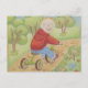 ilustracion de dibujo pastel con un niño montando una bicicleta