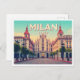 La postal milan de estilo vintage cuenta con un diseño de inspiración retro, perfecto como recuerdo de viajes, keepsake italiano, artículo de colección o regalo para los amantes y viajeros de Milán.