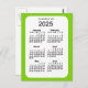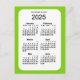 Postal Mini calendario verde amarillo 2025 de 6 meses, de
