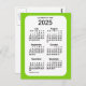 Postal Mini calendario verde amarillo 2025 de 6 meses, de