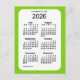 Postal Mini calendario verde amarillo 2026 de 6 meses, de