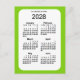 Postal Mini calendario verde amarillo 2028 de 6 meses, de