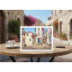 Share a quiet moment of wanderlust with this minimalist European street illustration postcard. Featuring a hand-drawn old town scene with cobblestone streets and stairways, the artwork is gently accented by a single figure in a light dress and straw hat, adding warmth and storytelling charm.