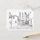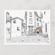 Share a quiet moment of wanderlust with this minimalist European street illustration postcard. Featuring a hand-drawn black-and-white old town scene with cobblestone streets and stairways, the artwork is gently accented by a single figure in a light dress and straw hat, adding warmth and storytelling charm.