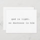 Inspired by the powerful verse from 1 John 1:5—"God is light, and in him is no darkness at all"—this postcard features a clean, modern design that lets the Word of God take center stage.