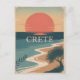 Captura la serena belleza de Creta con esta postal de estilo vintage minimalista. Con un diseño limpio y elegante que destaca las playas doradas de la isla, sus aguas azules y sus paisajes costeros, esta postal es un lugar perfecto para viajeros, coleccionistas y admiradores del arte vintage sofisticado. Un recuerdo intemporal del encanto mediterráneo de Creta.