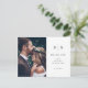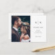 Estas elegantes y modernas tarjetas postales de agradecimiento boda presentan un sencillo diseño de texto en blanco y negro que exuda estilo minimalista, con tu foto favorita de un boda personal. Añada sus iniciales o su monograma para hacerlas completamente propias.