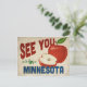 Una encantadora postal de viajes vintage de Minnesota con una hermosa manzana roja, junto con un divertido texto de estilo retro que dice, "Nos vemos en Minnesota"