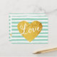 Postal Mint Stripes Fake Gold Love Heart Cute Girly
