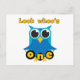 Búho diseña camisetas de primer cumpleaños para bebés, trajes para el cuerpo, tazas, imanes, tarjetas y más con un texto que dice "¡Mira quién es 1!