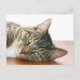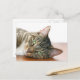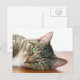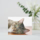 Marrón con gato blanco y ojos verdes mirando la postal de la foto