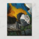 Macao azul y dorado con una agradable mirada y pose. La cabeza se inclinó hacia abajo con mirada de perfil y un ojo humorístico