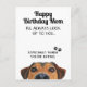 Feliz cumpleaños mamá. Siempre te admiraré... Especialmente cuando estás comiendo. Saludo divertido y lindo para un papá que tiene un perro. Tarjeta de cumpleaños para la madre del perro con una foto de primer plano de la cara de un perro marrón.