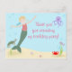 Una adorable y modesta sirena gracias postal que coordina con las invitaciones a la fiesta de sirena. Perfecto para el fiesta de tu pequeña. Obra vectorial original de Night Owl's Menagerie, 2014.