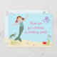 Una adorable y modesta sirena gracias postal que coordina con las invitaciones a la fiesta de sirena. Perfecto para el fiesta de tu pequeña. Obra vectorial original de Night Owl's Menagerie, 2014.