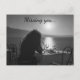 Postcard with woman by the sea overlooking the moonrise and the words, Missing you......