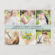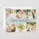 Elegante plantilla de tarjetas de felicitación de bodas: 6 espacios para retratos del día de la boda con un monograma verde/azul y negro de niebla personalizado en la parte delantera y mensaje de agradecimiento personalizado en la parte posterior. El esquema de niebla y color negro se puede modificar para coordinar con tus fotos. Los filtros de fotos están disponibles vía personalizar.