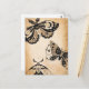 El retro vintage desvaneció tres polillas negras sobre un fondo de pergamino de color marrón angustiado. Perfecto para recolectar, intercambiar, rayar, encuadrar como una impresión de arte, o escribir un mensaje a un amigo y sorprenderlos con una postal en el correo enviado por usted porque usted lo pensó.