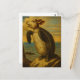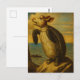 This postcard features a vintage oil painting style interpretation of the Mock Turtle character from Lewis Carroll's 'Alice's Adventures in Wonderland' (1865). The creature is part turtle, part bovine calf. The Mock Turtle is a very sad character from the children's adventure story, and is depicted crying.