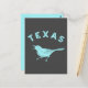 Estas postales presentan un simple ilustracion de estilo de un sinsonte, el ave estatal de Texas, con Texas escrito arriba. El ilustracion y el texto azul acuático, de estilo retro y vintage, se funden con un fondo gris de carbón.