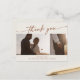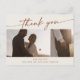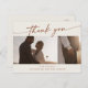 Esta moda bohemia de boho boda crema foto gracias a postcard es perfecta para un boda minimalista. El naranja neutro quemado en terracota y el moderno diseño bohemio crema presentan una caligrafía rústica sencilla con un estilo único y clásico. Personalice la parte delantera de la postal con 2 fotos del día de su boda y sus nombres. Personalice la parte posterior con su dirección de retorno. Borra el texto de ejemplo en la parte posterior de la postal para que puedas escribir a mano una nota reflexiva a cada invitado. Alternativamente, puede imprimir un mensaje.