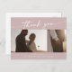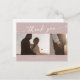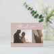 Esta rosa de moda de boho foto boda rosada de agradecimiento es perfecta para un boda minimalista. El diseño bohemiano moderno de color rosa ocre y rosa neutro presenta una caligrafía rústica sencilla con un estilo único y clásico. Personalice la parte delantera de la postal con 2 fotos del día de su boda y sus nombres. Personalice la parte posterior con su dirección de retorno. Borra el texto de ejemplo en la parte posterior de la postal para que puedas escribir a mano una nota reflexiva a cada invitado. Alternativamente, puede imprimir un mensaje.