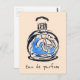 Un ilustracion de moda de una obra de arte original de la artista Sacha Grossel de una botella de perfume de perfume azul vintage. Este ilustracion acuático de una marca de perfume de lujo es de estilo pop art y el color de fondo es personalizable. Cita francesa perfume de Eau de Parfum para un tema de moda francés.