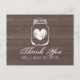 Paneles de grano de madera grano de moda de campo tarro de albañil gracias tarjetas. ¡Amor y gracias! Parte de la temática rústica DIY. Diseño exterior con corazón vintage descolorido. Perfecto para los matrimonios al aire libre en julio y agosto. Personaliza con el nombre de la novia y el novio más la fecha de casarte. Color del fondo del personalizable. Estilosa tipografía de escritura angustiada. Hermosa obra de arte para un boda de moda. Colores marrón y blanco.