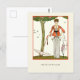 Una postal con el ilustracion de moda de 1913, Creation Paquin de George Barbier (1882-1932). Una mujer con un paraguas bajo un árbol con un vestido pleto blanco y una chaqueta de naranja. Diseño de la casa de modas francesa de Paquin (Maison de Couture). Jeanne Paquin era una modista y diseñadora de moda. Isidore Paquin dirigía el negocio.