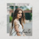 Esta tarjeta de postales de invitación de graduación de moda incluye sofisticados guiones negros a mano sobre una foto completa de moda de tu graduado. Personalizar esta tarjeta de graduación con una fotografía de la segunda escuela secundaria, universidad o universidad en la parte de atrás debajo de tus detalles principales. El cuadro trasero está decorado con un blanco elegante para darle un toque moderno a sus postales.